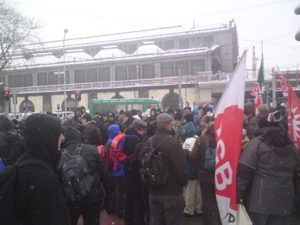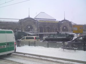 13.00 Uhr: War es das schon im Groben? Wahrscheinlich haben einige Autonome aus Berlin + X erfolgreich ein paar Gleise blockiert, dafür spricht schon die erbärmliche Anzahl an versprengten Rechten, die auf dem Schlesischen Platz am Bahnhof Neustadt mittlerweile nur eine „Veranstaltung“ abhalten dürfen (s. Foto).