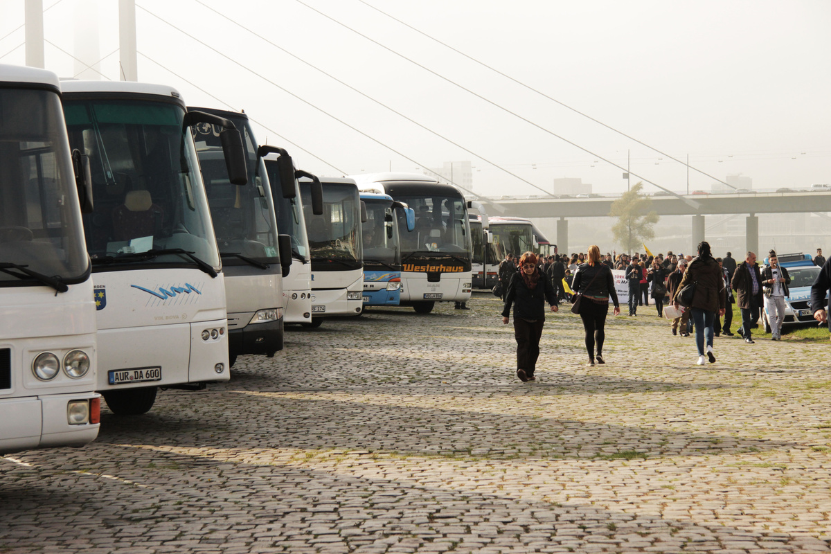 Ein großer Teil der angereisten Demonstranten konnte diese Worte allerdings nicht mehr hören: Die Polizei erklärte den Veranstaltungsort der Abschlusskundgebung nach einer Weile für voll. Mehrere Tausend Demonstranten mussten außerhalb des Platzes vorm Landtag verweilen.