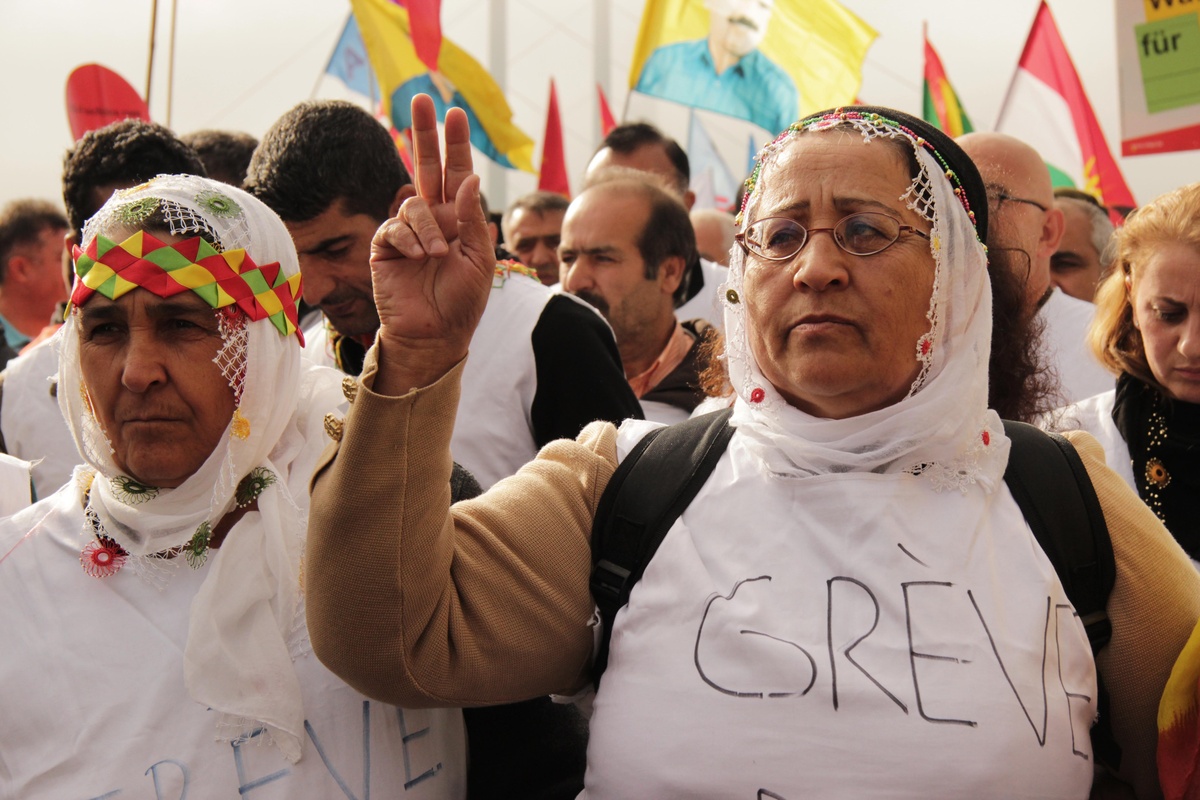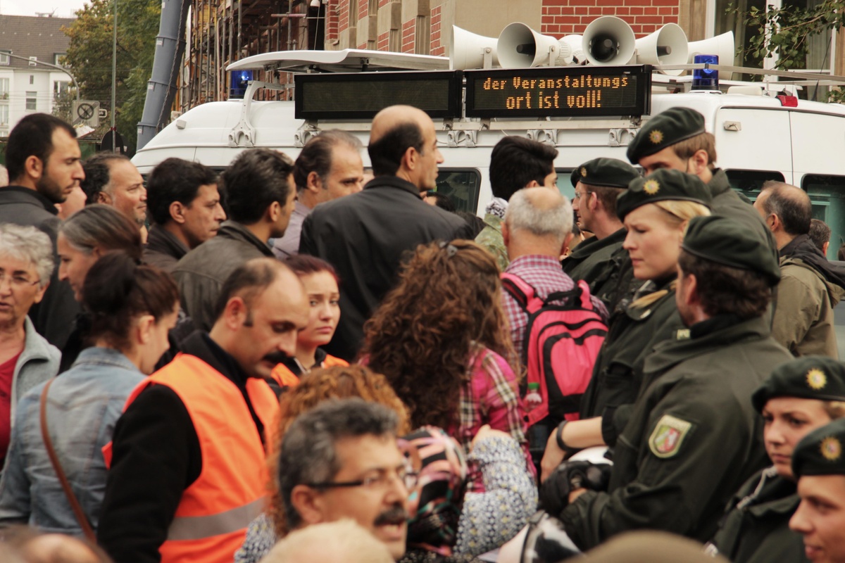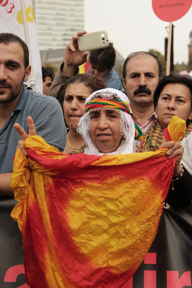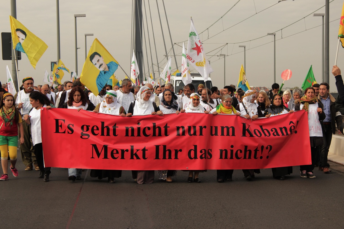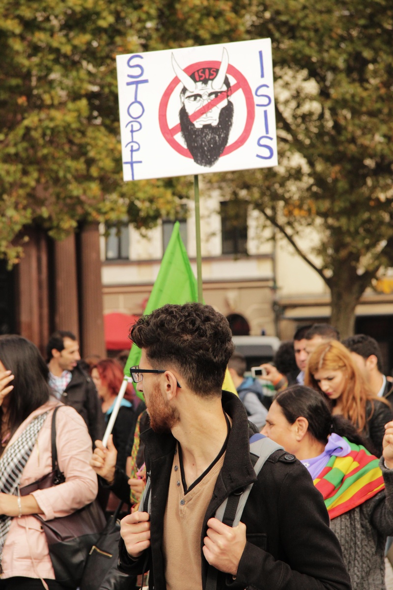 In Düsseldorf haben heute mehr als 20.000 Menschen gegen den Islamischen Staat und für den kurdischen Widerstand gegen die Islamisten in Kobanî demonstriert. Genaue Angaben zu den Teilnehmerzahlen gestalten sich schwierig: Die Düsseldorfer Polizei spricht von 21.000 Demonstranten, das kurdische Zentrum für Öffentlichkeitsarbeit „Civaka Azad“ spricht seinerseits von über 80.000. Es dürften zumindest deutlich mehr als 20.000 Menschen auf der Straße gewesen sein. Unstrittig ist, dass die Demonstration entgegen vorheriger Befürchtungen des Verfassungsschutzes friedlich blieb.