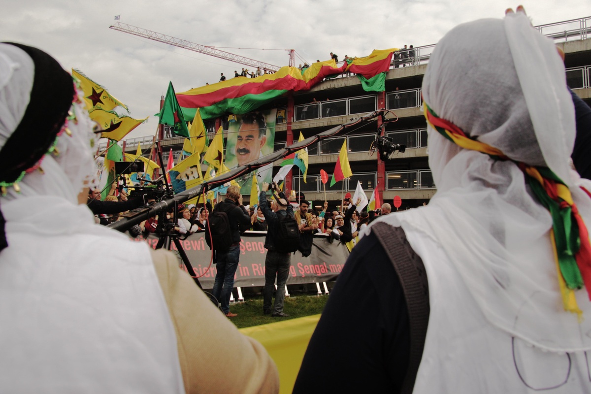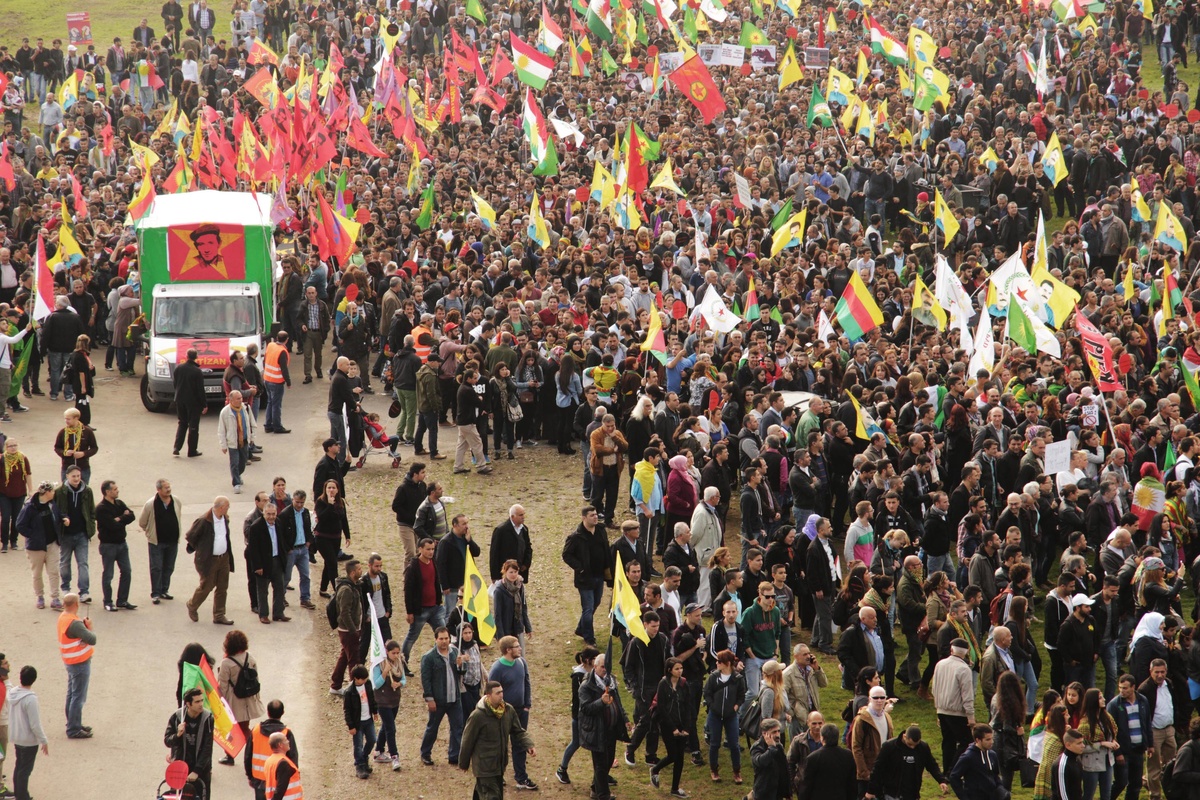 Zur Demonstration aufgerufen hatte die Organisation „NAV-DEM – Demokratisches Gesellschaftszentrum der KurdInnen in Deutschland“. Mobilisiert wurde in der vergangenen Woche bundesweit und im angrenzenden Ausland. Aufgrund der erwarteten Größe der Demonstration wurde der Auftaktort nachträglich vom Hauptbahnhof auf eine Festwiese am Rhein in Düsseldorf-Oberkassel verlegt. Von dort bewegte sich die die Demonstration um kurz nach zwölf langsam in Richtung des Nordrhein-Westfälischen Landtags zu ihrer Abschlusskundgebung.