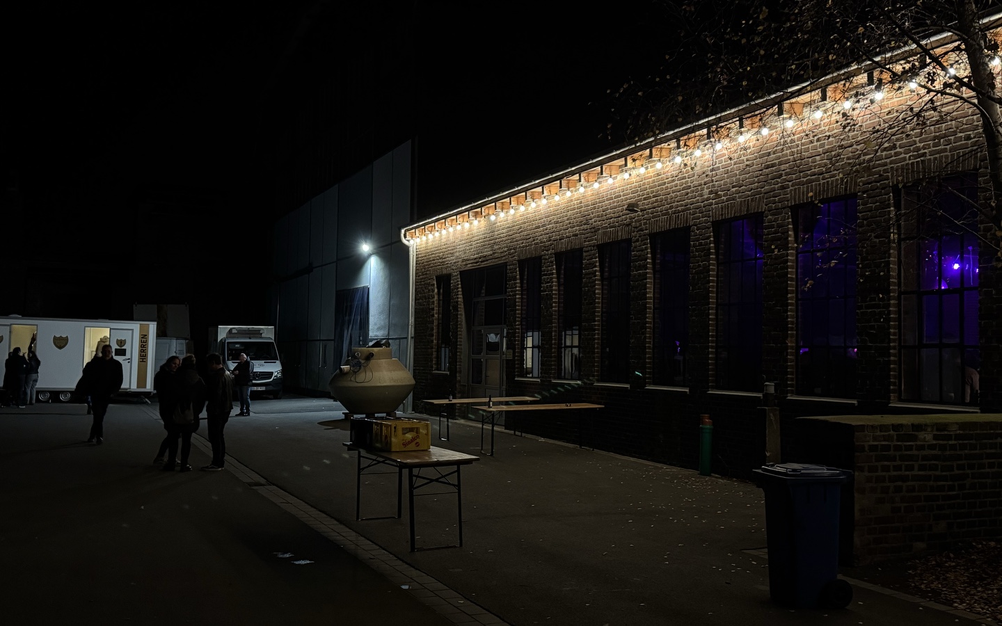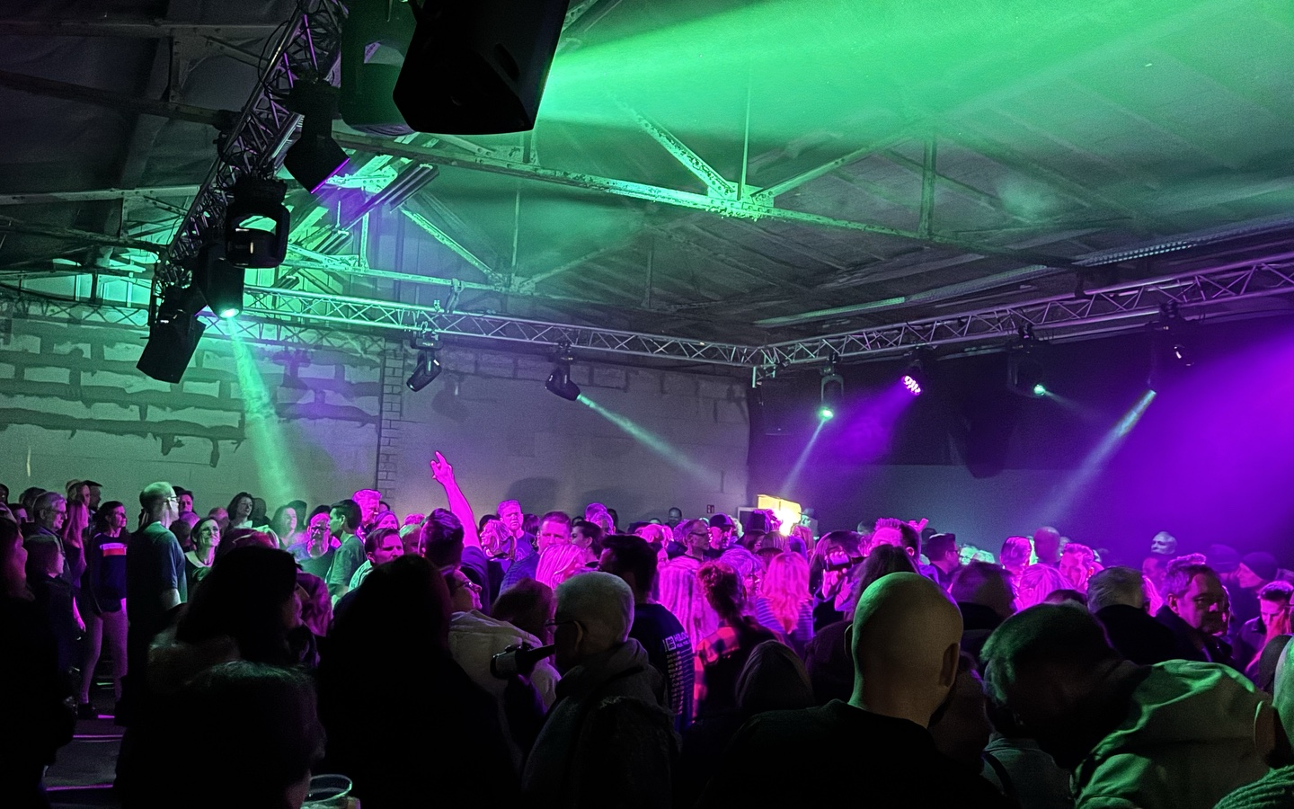 Wesentlich kälter, mit härterer Musik, ist es im Rohbau der neuen Halle. Dort ist es dunkler als im fertigen Gastraum der Brauerei. Es läuft Musik wie z.B. „Smells like Teen Spirit“ von Nirvana. Die Halle ist komplett voll, die Stimmung ist bombastisch. Trotz der Kälte, die man einfach weggetanzt.