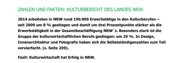 „Das ist ja toll“, dachte ich mir im ersten Moment. Im zweiten dachte ich mir dann, dass es ja vielleicht ganz interessant sein könnte, wenn ich mir mal den Kulturbericht des Landes NRW herunterladen und durchlesen würde.