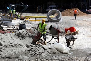 Die paar Bauarbeiter, die gerade Mittagspause machen, sind ein schwacher Ersatz.