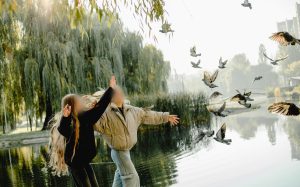 Im vergangenen Herbst war Oksana zum ersten Mal, seitdem sie der Reichweite von Putins Raketen entkommen ist, für wenige Tage zurück in der Ukraine. Ein Tag im Park mit ihrer Tochter und deren bester Freundin. Das milde Licht der Sonne, der Himmel weiß wie eine Leinwand, die Tauben wie von Picasso in den Himmel gemalt. Man muss in das Bild hineinhören, um die Luftalarme zu hören, die Detonationen, den Schmerz.