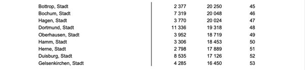Oder einfach mal Bottrop und Herne mit Wolfsburg u. Ingolstadt vergleichen. Da wird es dann richtig bitter.