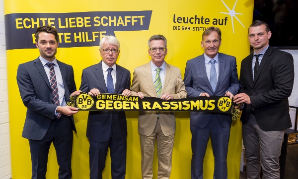 Bereits zuvor hatten Lörcher sowie Marco Rühmann, Projektleiter CSR bei Borussia Dortmund und verantwortlich für die BVB-Stiftung „leuchte auf“, de Maizière die wesentlichen Inhalte der Antidiskriminierungsarbeit sowie der Stiftungsarbeit im Hause Borussia Dortmund nähergebracht. Der Bundesinnenminister äußerte sich im Anschluss äußerst positiv über das Engagement des Bundesligisten: „Präventivarbeit im Kampf gegen Rechts ist Aufgabe des Staates, aber auch im Besonderen der Gesellschaft. Der BVB setzt hier seinen guten Namen nachhaltig ein im Kampf gegen Extremismus und Rassismus. Mir scheinen der Ansatz und die Ziele, die in Dortmund verfolgt werden, sehr richtig zu sein. Hier wird nicht tabuisiert, sondern hier werden bestehende Probleme klar benannt und angegangen.“ BVB-Präsident Dr. Reinhard Rauball ergänzte: „Wir gehen mit einer klaren Botschaft aus dieser Veranstaltung: Nehmt dieses Thema nicht auf die leichte Schulter!“