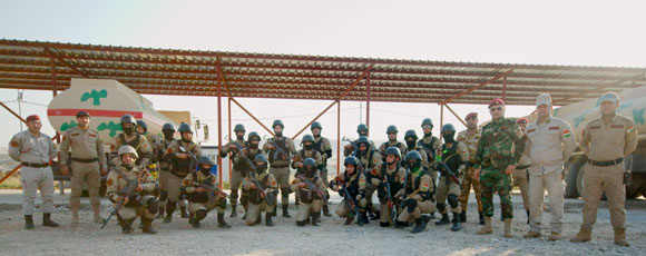 Er kommandiert die Peschmerga von der türkischen Grenze bis zum Mossul Damm. In seinem Stützpunkt wurden wir mit „Kommt rein!“ vom Dolmetscher begrüßt. Der General selber erklärte uns, dass er noch keine Interviews gegeben hat, „not even CNN or BBC!“. Wir redeten mit ihm über die Truppen unter seinem Kommando, wie sie ihren Bereich halten können, bis wohin sie operieren. Er zeigte uns an der Karte genau, bis wohin seine Truppen gerade stehen, und warf die süffisante Frage auf, ob wir den irakischen Premier Al Maliki nicht mal fragen wollen, warum die 30.000 irakischen Soldaten Mossul so fluchtartig verließen. Im Anschluss konnten wir mit einer Peschmerga Spezialeinheit sowie mit den normalen Soldaten sprechen, uns ihre Ausrüstung und ihren Alltag erklären lassen. Gerade die Spezialeinheit hatte ein paar Leute dabei, die so aussahen, als könnten sie Kurdistan im Alleingang verteidigen.