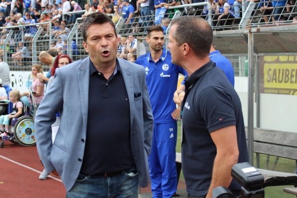 Zugleich war der entspannte Sommerkick im Kreis Recklinghausen auch der erste Auftritt von Schalkes Trainer Domenico Tedesco im Rahmen eines kompletten Spiels seiner neuen ‚Elf‘. Und seine mit Nachwuchs- und Ersatzkräften aufgepeppte Auswahl enttäuschte den Coach dabei wahrlich nicht, wie er nach dem Match erfreut bestätigen konnte.
