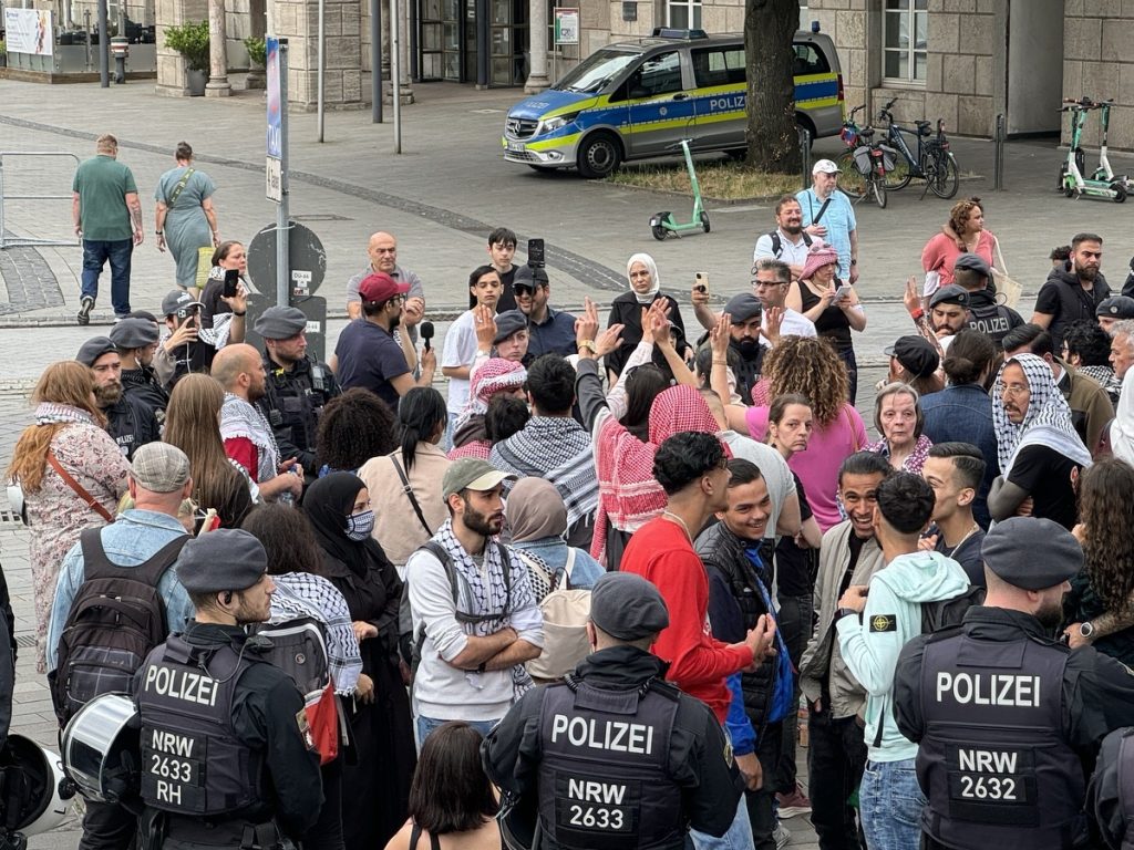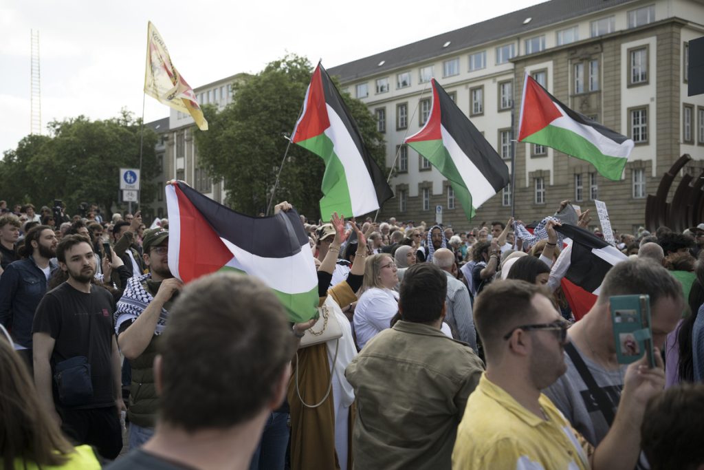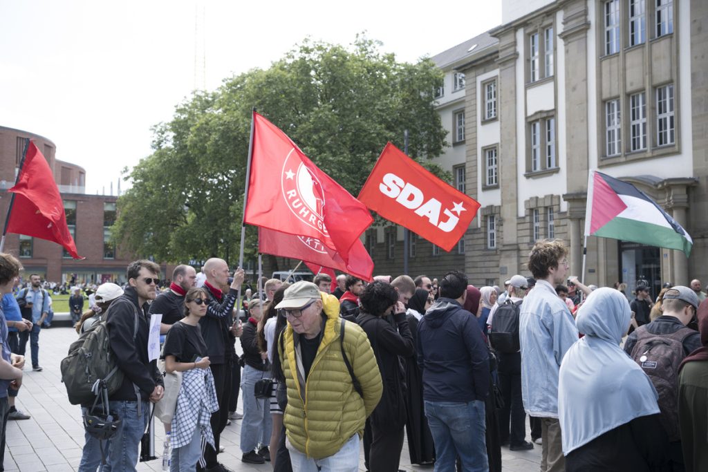Gegen Störungen, aus dem Umfeld von Duisburger Hamas-Fans, ging die Polizei während der Kundgebung leider kaum vor.