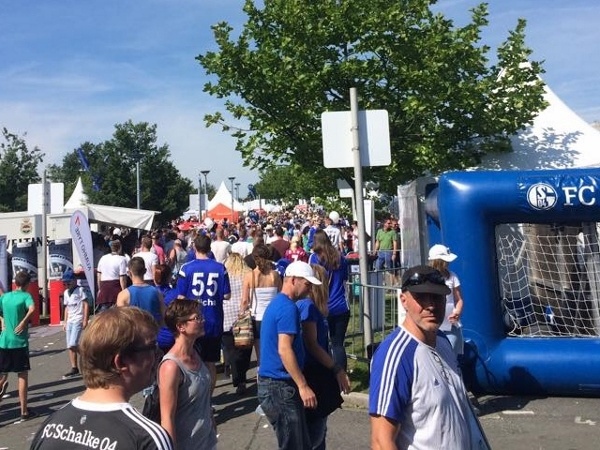 Gut 100.000 Besucher sollen es nämlich auch in diesem Jahr letztendlich wieder gewesen sein, welche heute rund um die Arena des FC Schalke 04 die Saisoneröffnung des Bundesligisten besucht haben. Kein Vergleich also, zu Bildern und Meldungen wie sie uns zuletzt etwa bei vergleichbaren Anlässen aus Hoffenheim oder Bremen erreichten, wo bei den Fanfesten der dortigen Clubs vergleichsweise wenig Trubel zu sehen und mitzuerleben war. Und während die Saisoneröffnung des BVB vor vier Wochen noch darunter litt, dass es viel zu heiß war an diesem Tag, hatten die Königsblauen Glück und erwischten ideales Wetter.