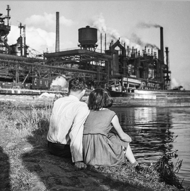 Neben den eher dokumentarischen industriellen Fotografien von Anne Winterer finden sich jedoch Bilder ganz anderer Natur in der Ausstellung. Wir sehen Menschen in ihrem Alltag, in ihrer Freizeit, können sozusagen in ihr Leben eintauchen. So finden sich aus Winterers Werk beispielsweise Bilder von einem jungen Paar, vor einer Industrieanlage sitzend oder von zwei Fischern am Rhein, die gerade den Fang aus den Netzen klauben. Der Bilderbogen aus den 1920er bis 1930er Jahren umspannt Leben und Arbeiten der Menschen an Rhein und Ruhr aus dem Blickwinkel einer dokumentarisch arbeitenden Fotografin, die auch die scheinbar nebensächlichen Alltagssituationen lebendig werden lässt.