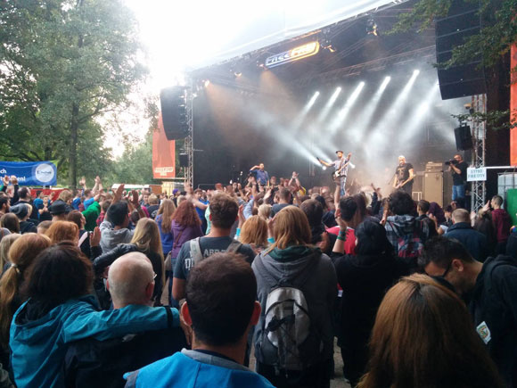 „wir haben uns mal beworben für das Festival im Jahr 2006 und dann am Schluss war noch ein Bandslot frei, das ist aber ne` Legende die uns auch immer nur erzählt wird wer weiß ob die stimmt, und da hatten die Veranstalter die Wahl zwischen einer Band namens Benzin, also uns, und einer Band namens Öl. Da haben die sich für uns entschieden und seitdem ist es eine Liebesgeschichte in inzwischen unzähligen Akten.“