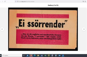 Die Erfindung einer Sprecherposition sei das „wirklich Neue“ an dieser Art von Kriegsführung gewesen, so Delmer 1963 im Gespräch mit Günter Gaus, hier nachzuhören ab Min 43:00. Wen das heute an Putin und dessen Trollfarmen erinnert: Das Passstück zu dieser klandestinen Werbung für die freie Welt, ohne das es niemals geht, ist Aufklärung mit politischen Argumenten, wie sie Thomas Mann in seinen Radioreden formuliert hat, Aufklärung mit Appellen an die lebenstüchtige Vernunft, wie sie Arthur Harris, „Bomber-Harris“ gerufen, an die Deutschen gerichtet hat, und eben Aufklärung mit Artefakten, Aufklärung als Kunst: