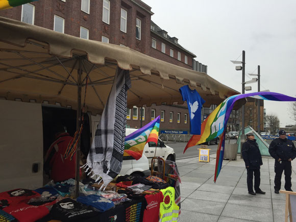 und als die 500 Demonstranten von 14 – 15 Uhr auf dem Friedensmarsch waren, wurde der leere Platz fotografiert.