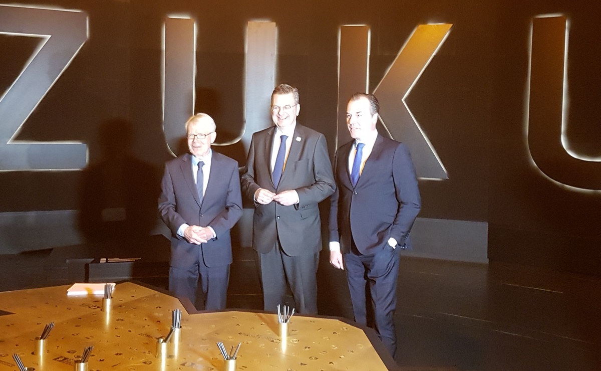 DFB-Präsident Reinhard Grindel, DFL- und BVB-Präsident Reinhard Rauball und der Aufsichtsratsvorsitzende des FC Schalke 04, Clemens Tönnies, erörterten im Deutschen Fußballmuseum mit Blick auf die einst enge Verzahnung von Vereinen und Zechen vergangene, gegenwärtige und zukünftige Entwicklungen des Fußballs im Ruhrgebiet und darüber hinaus.