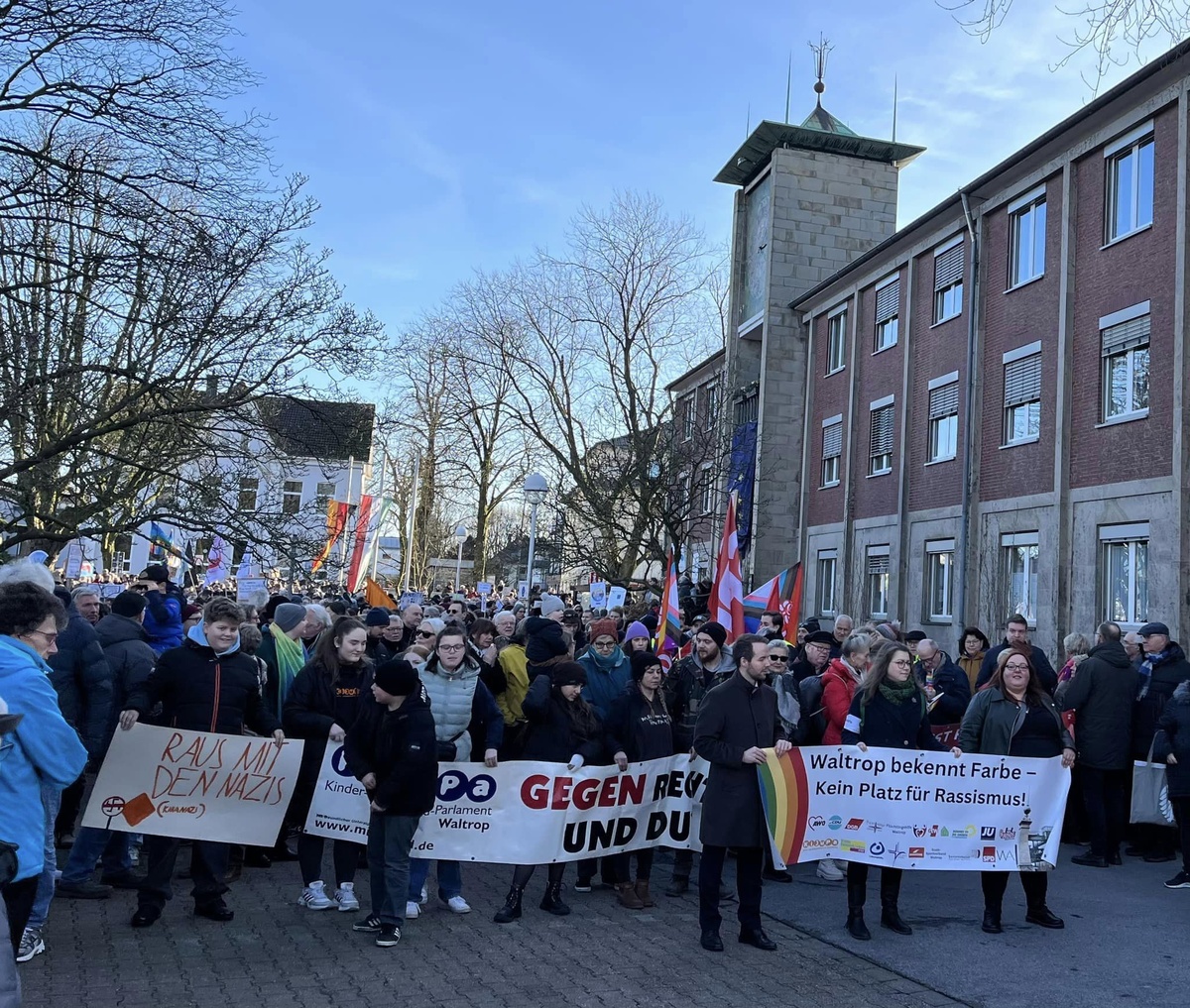 In meiner Heimatstadt Waltrop (Kreis Recklinghausen) kamen am Samstagnachmittag, trotz des parallel stattfindenden Spieltags in der Fußball-Bundesliga (wer sich solche Termine ausdenkt kann kein Fußballfreund sein 😉 ), gut 2.000 Leute zusammen, um ihre Sorgen vor dem Rechtsruck in unserer Gesellschaft kundzutun.