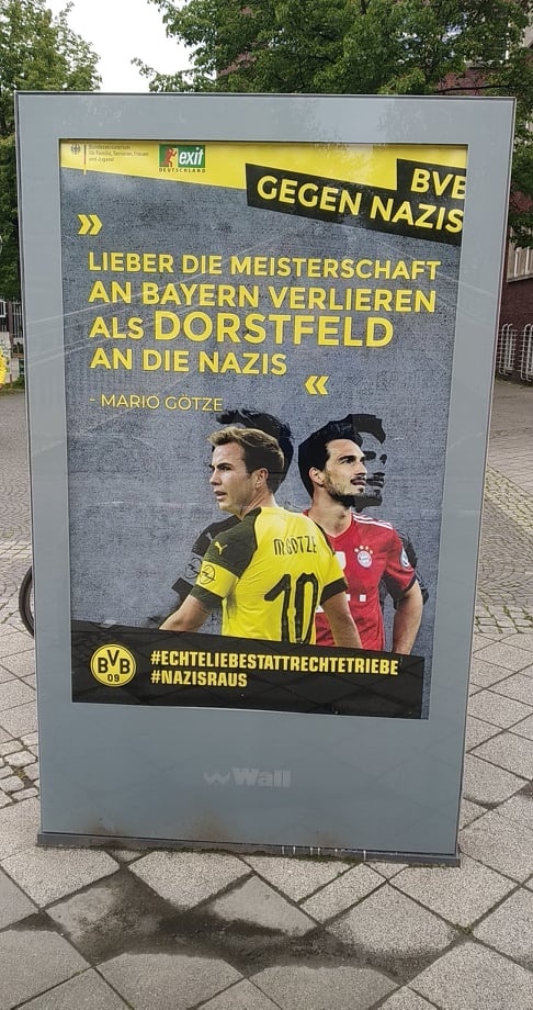 Während der BVB heute gegen Fortuna Düsseldorf um seine vielleicht letzte Chance auf die Deutsche Fußballmeisterschaft 2019 kämpfte, und diese durch ein knappes 3:2 gegen Fortuna Düsseldorf im letzten Heimspiel der Saison auch aufrecht erhielt, sorgten diverse Plakate mit auffälligem BVB-Bezug im gesamten Dortmunder Stadtgebiet für fast noch mehr aufsehen als die recht mühsam wirkenden Darbietungen der Profi-Kicker im Westfalenstadion.
