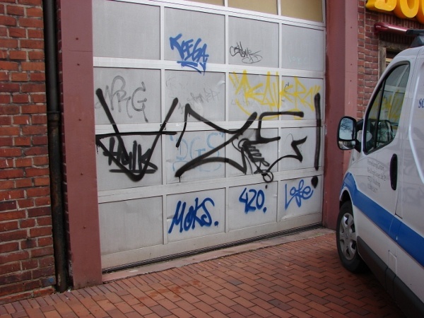 So hat zum Beispiel die örtliche Woolworth inzwischen offenbar ein professionelles Malerteam im Einsatz, welches die in regelässigen Abständen am Geschäftsgebäude durchgeführten Farbattacken wieder befreit. Zumindest für ein paar Tage. Allerdings geschieht das dort eben mehr oder weniger stillschweigend.