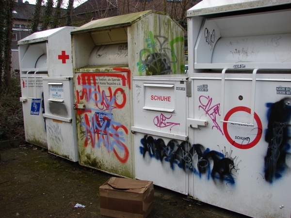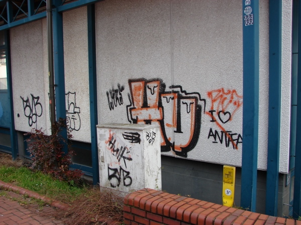 Die Schriftzüge der Graffiti zeugen dabei von durchaus unterschiedlichen Urhebern. Teils offenkundig politisch motiviert, teils aber auch offenkundig den Fanlagern von BVB und S04 zuzurechnen, oder eben Mitmenschen auf einem merkwürdig gearteten ‚Egotrip‘, die nur ihren Schriftzug möglichst hundertfach im Stadtgebiet vorfinden möchten. Alle Formen sind irgendwo vertreten.