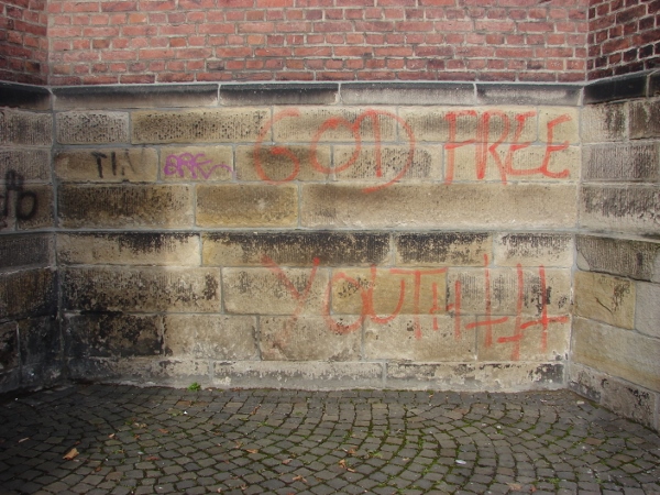 Ob der aktuelle öffentliche ‚Aufschrei‘ aus dem Umfeld der Kirche die vermutlich jugendlichen Sprayer jedoch nun wirklich einschüchtert bzw. ängstigt, ihnen die Lust an ihren Taten nehmen kann, oder nicht doch eher zusätzlich motiviert? Das bleibt zunächst erst einmal noch abzuwarten.