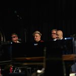 Irgendwie schafft er es dann noch zu seinem Flügel, nickt daran kurz ein, dann spielt er einen Ton, dann mehrere…im ersten Moment erscheint es wie progressive Experimentalmusik, dazu eisernes Schweigen des Künstlers.