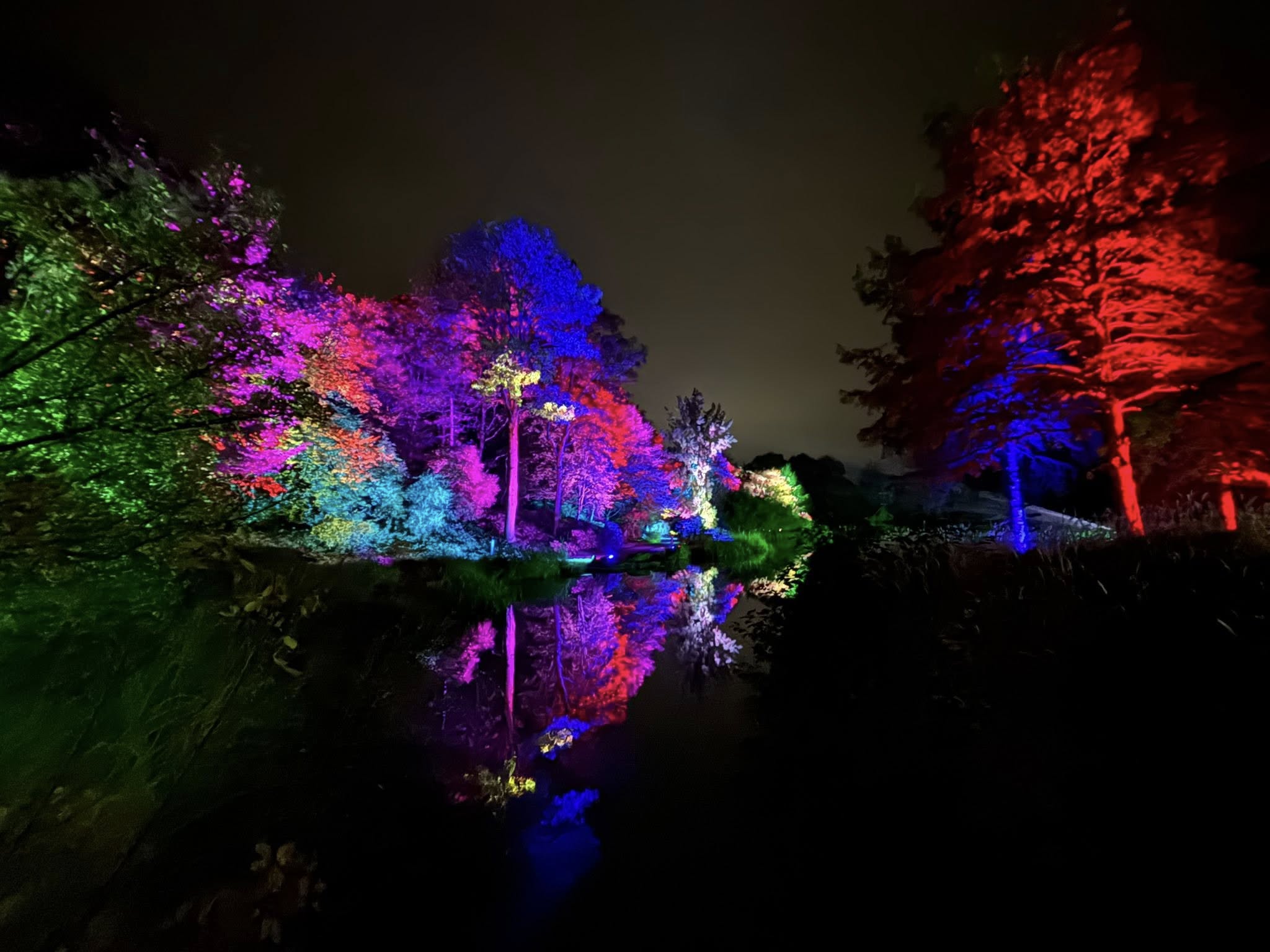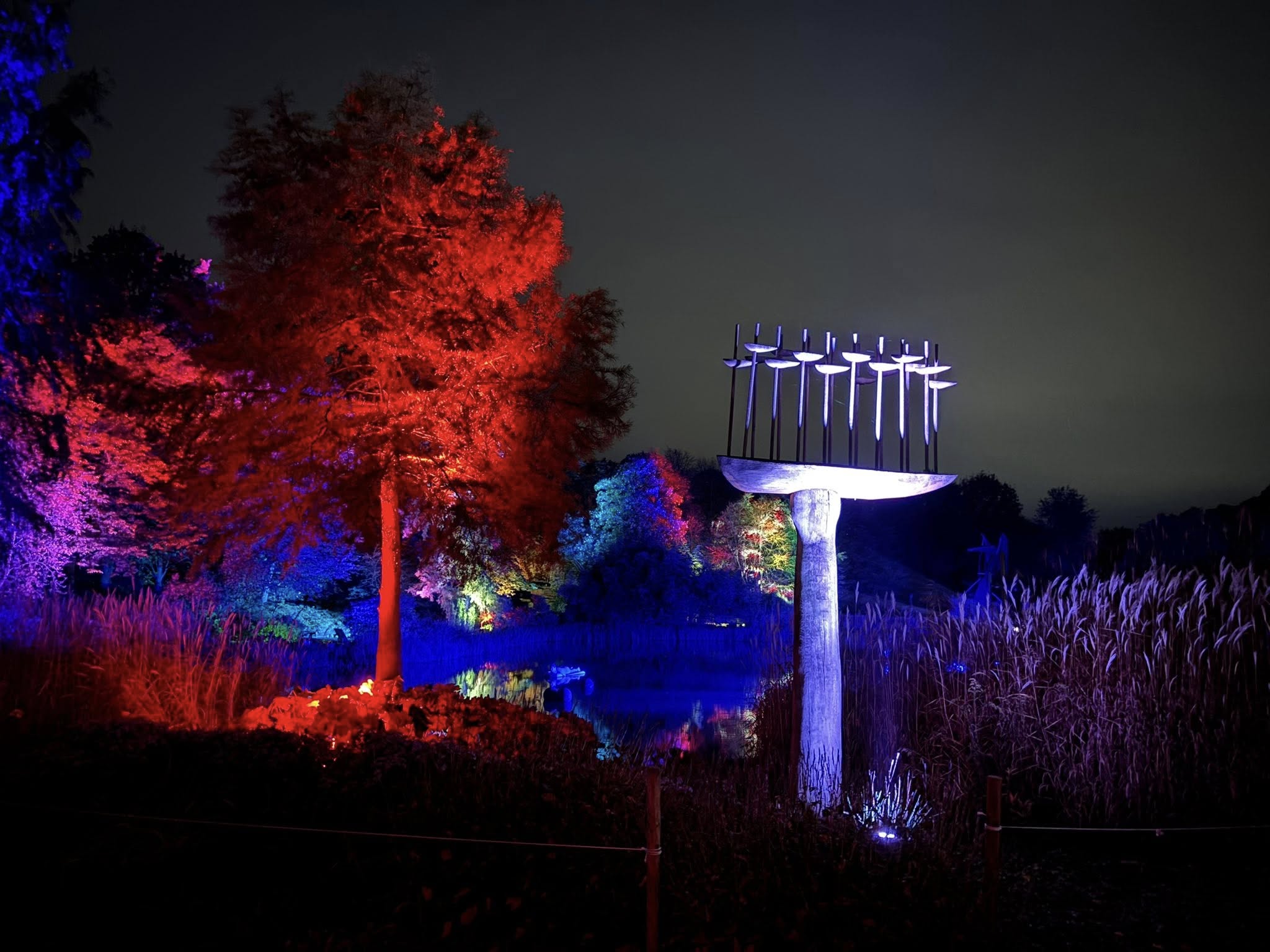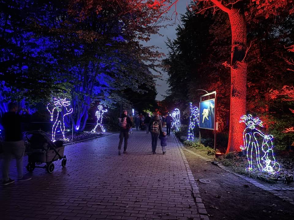 Schon beim Eintreten in den Park verändert sich die Wahrnehmung. Die Luft ist klar, der Boden von raschelndem Laub bedeckt, und ein leises Raunen geht durch die Besucher, sobald die ersten Installationen sichtbar werden. Wege, Bäume und Teiche verwandeln sich in eine stimmungsvolle Kulisse aus Farben, Schatten und Lichtspielen. Mit jedem Schritt eröffnet sich eine neue Szenerie: leuchtende Baumriesen, mystisch schimmernde Wasserflächen, sanft pulsierende Lichterbögen, die den Himmel nachzeichnen.