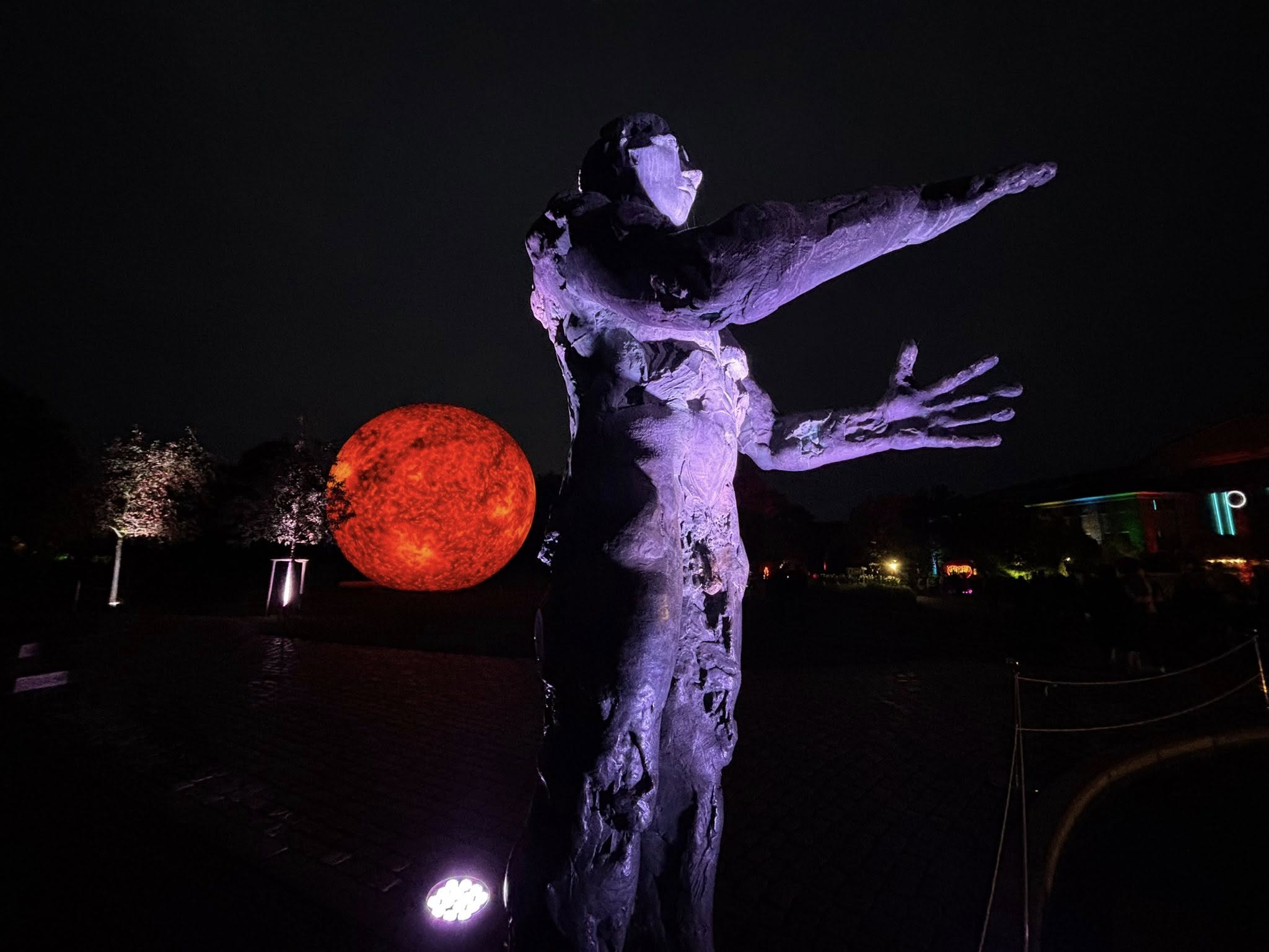 Der Maximilianpark, einst das Gelände der Landesgartenschau 1984, bietet dafür die perfekte Bühne. Zwischen Teichlandschaften, alten Industriebauten und weiten Grünflächen entsteht ein Zusammenspiel von Geschichte und Gegenwart. Besonders eindrucksvoll ist der ikonische Glaselefant, der durch wechselnde Lichteffekte fast zu einem lebendigen Wesen wird.