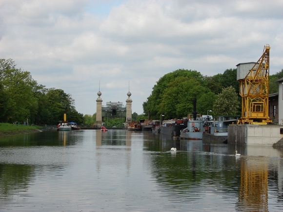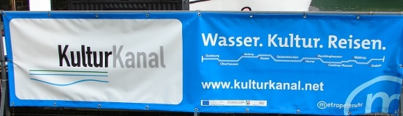 Heute wird dort auch die Ausstellung „100 Jahre Rhein-Herne-Kanal“ eröffnet, die auf dem umgebauten Schleppkahn ‚Ostara‘ eingerichtet ist. Das Schiff liegt kurz vor dem ‚Alten Hebewerk‘ vor Anker.