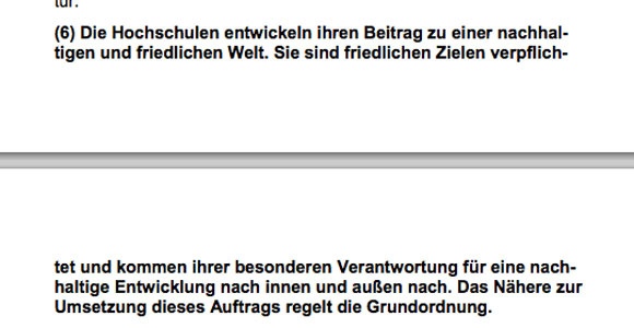 Dumm nur, dass in der Zivilklausel des Hochschulzukunftsgesetzes nichts von einem Verbot militärischer Forschung steht: