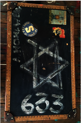 Ebenso durch die Aufschrift, die optisch stark an Koffer aus den KZ Anlagen stammen erinnert.