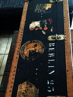 Auffällig ist aber auch der Aufkleber der Cunard White Star Line, die zwischen 1934 und 1949 existierte – und damit einen weiteren Hinweis liefert, dass der Koffer-Inhaber über für die Zeit ungewöhnliche Reisemöglichkeiten (und Finanzen) verfügte.