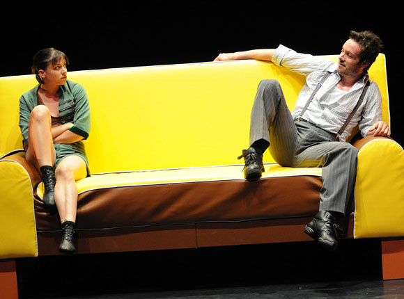 Dem Tanz von Daniel Proietto vom norwegischen Nationalballett (Musik: Nina Simon) folgte ein Stück der Tanzcompagnie Gauthier Dance, das etwas ganz Besonderes in den Mittelpunkt seiner Choreografie rückte: Humor. Nicht unbedingt üblich im Opernhaus, lachte das Publikum laut und herzlich über die fast grotesken Annäherungsversuche eines Mannes an eine Frau, die auf einem überdimensionalen Sofa sitzt. Sie versucht mehr oder weniger erfolgreich sich dieser „Kontaktaufnahme“ (neudeutsch: Anmache) zu entziehen – bis sie dem Tanzpartner doch erliegt.
