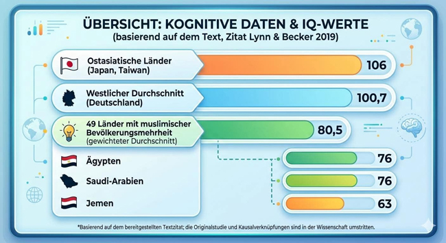 Immer wieder kursieren im Netz Grafiken, die angebliche „IQ-Werte“ von Ländern oder ganzen Weltregionen vergleichen. Die Zahlen wirken präzise, die Balken ordentlich sortiert – und die Botschaft scheint eindeutig: Hier die „klugen“, dort die „weniger klugen“ Gesellschaften. Das Problem: So einfach ist es nicht.