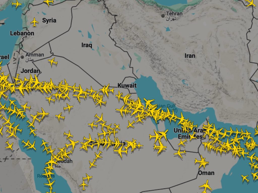 Der Himmel über dem Iran ist frei – abgesehen, von der Israelischen Luftwaffe (Screenshot Flightradar24)