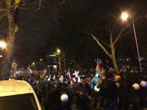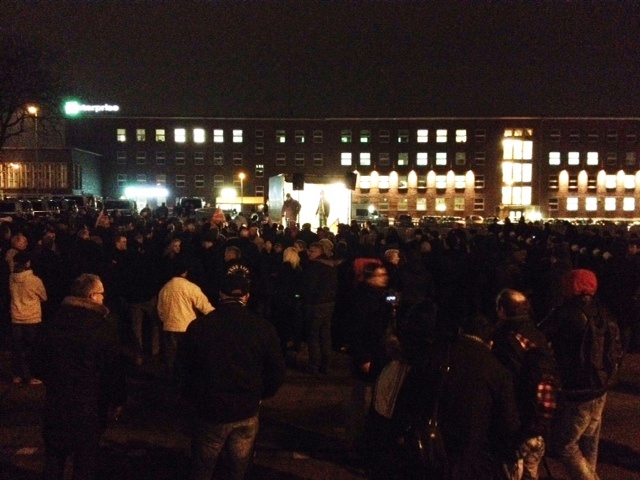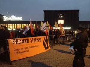 19.52 Uhr: DUIGIDA hat seine Veranstaltung beendet und wird von der Polizei in den Bahnhof geführt. Dieser war schon vorher komplett gesperrt worden, um die Abreise der Demonstranten zu erleichtern. Immer noch stehen vor dem Bahnhof gut 1000 Gegendemonstranten und verabschieden mit lauten „Alerta“ Rufen die Teilnehmer der DUIGIDA Demonstration, woraufhin diese mit Beleidigungen antworten.
