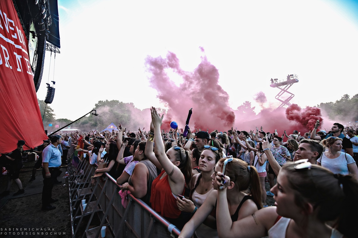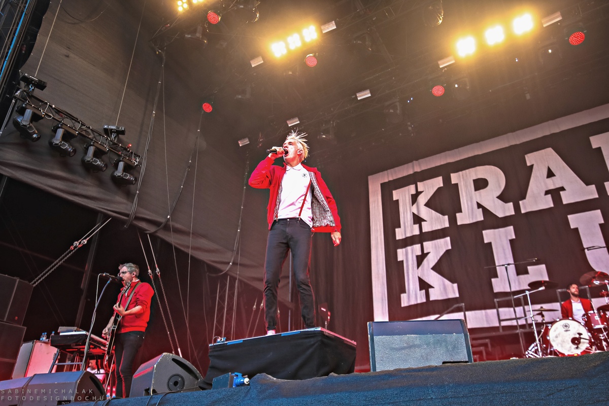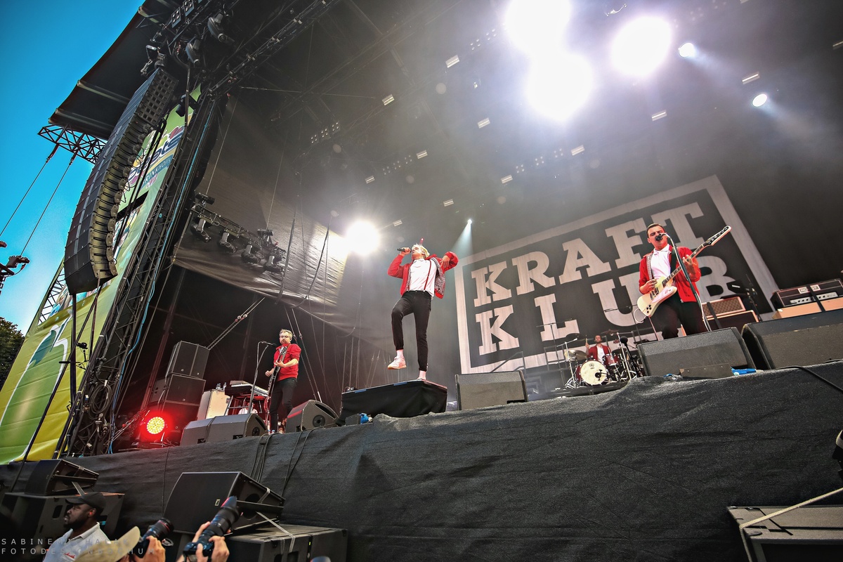 Besonderer Höhepunkt am ersten Abend war die fulminante Liveshow des Mainacts Kraftklub ab 20.45 Uhr. Die Chemnitzer waren selber beeindruckt, wie ihre Fans bei den Temperaturen noch so Vollgas geben konnten und hauten im Sonnenuntergang und bis kurz vor Aufgang des Blutmondes einen Kracher nach dem anderen raus.