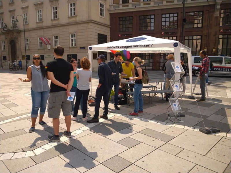 DWP: Wir konnten gute Gespräche führen. Unser thematischer Fokus lag auf der schwierigen Situation von Kindern, die in der Gemeinschaft der Zeugen Jehovas aufwachsen. Abgesehen von der Aufklärungsarbeit war die Veranstaltung eine gute Gelegenheit für ehemalige Zeugen Jehovas, sich zu vernetzen und untereinander auszutauschen. So konnten neue Kontakte geknüpft werden. Es ist wichtig, dass Ausstiegswillige erfahren, dass sie in ihrer Situation nicht alleine dastehen, und Ansprechpartner finden können. Begleitet wurde das Event von einem offenen Brief an die Jehovas Zeugen in Österreich, und einer Videoaktion, in der Betroffene ihre eigenen Erlebnisse in der Kindheit bei Zeugen Jehovas schildern.