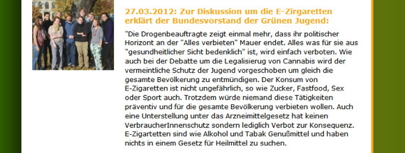 Es ist wie im richtigen Leben. Die Mutti verbietet etwas und die Kids rebellieren. Wobei die Argumentation der grünlingschen Hobbits schon verfängt. Der Text ist auch schön durchgegendert. Ich fürchte, die Ministerin wird, bevor weitere Entscheidungen folgen, das Thema grün(d)lichst auch auf sexuelle Orientierung, demographischen Wandel und globalen Minderausgaben hin überprüfen. Vielleicht folgt am Ende der Erlass, dass E-Zigaretten nur von Piraten geraucht werden dürfen, um sich so auf lange Sicht der Konkurrenz zu entledigen.