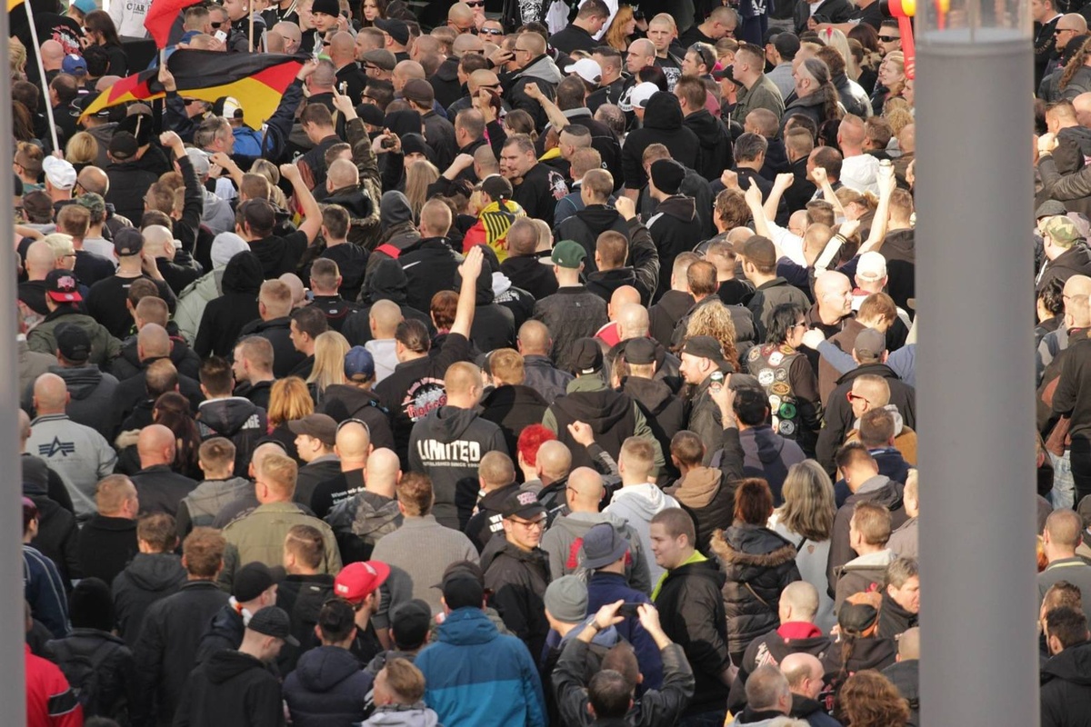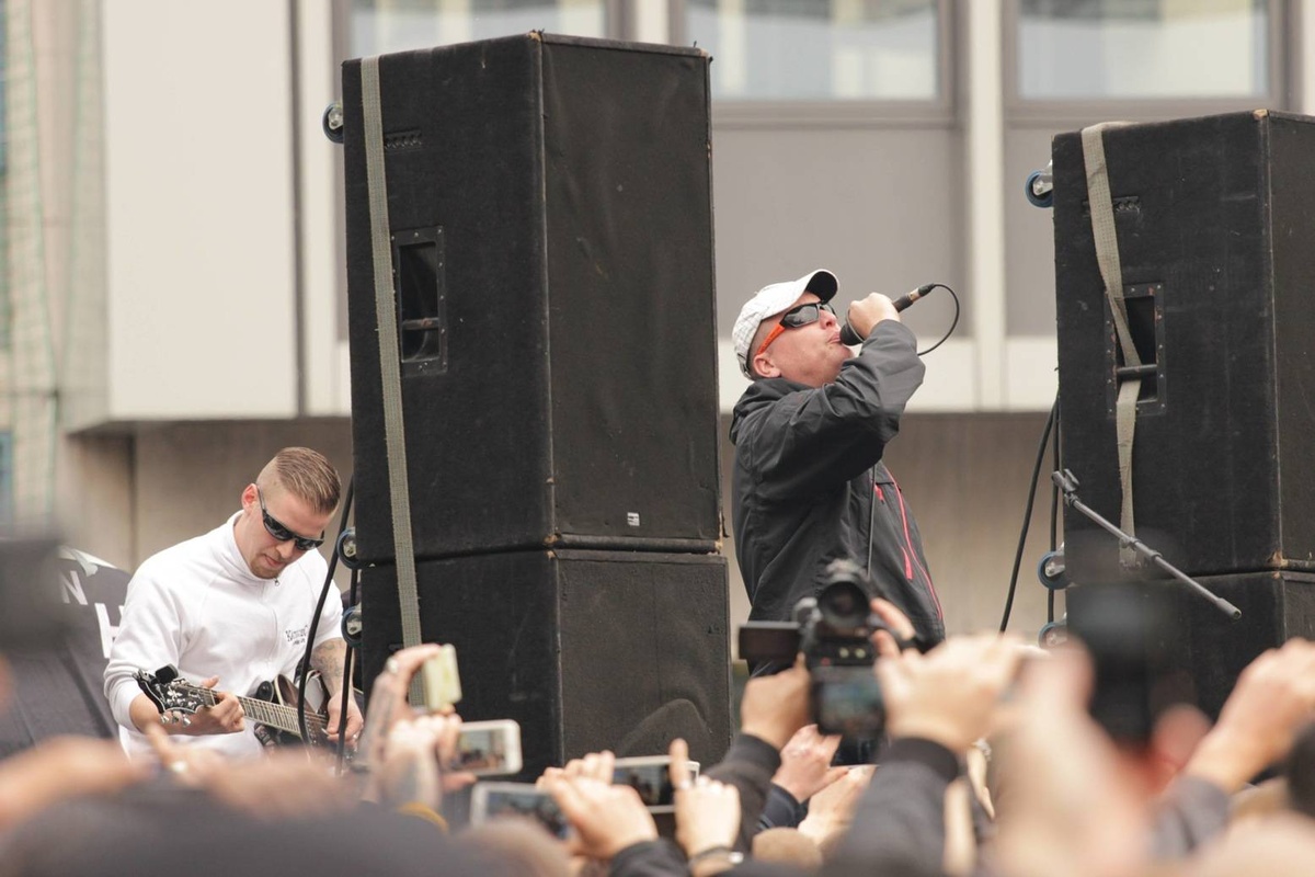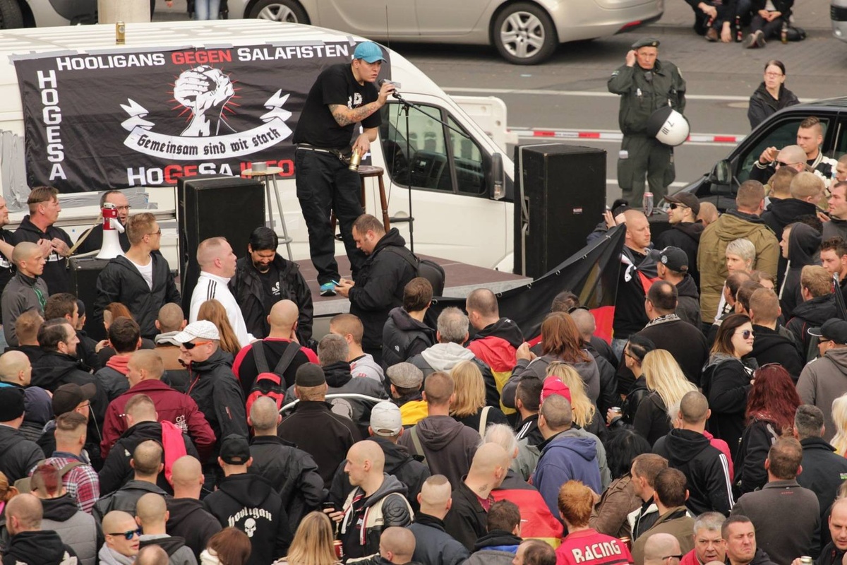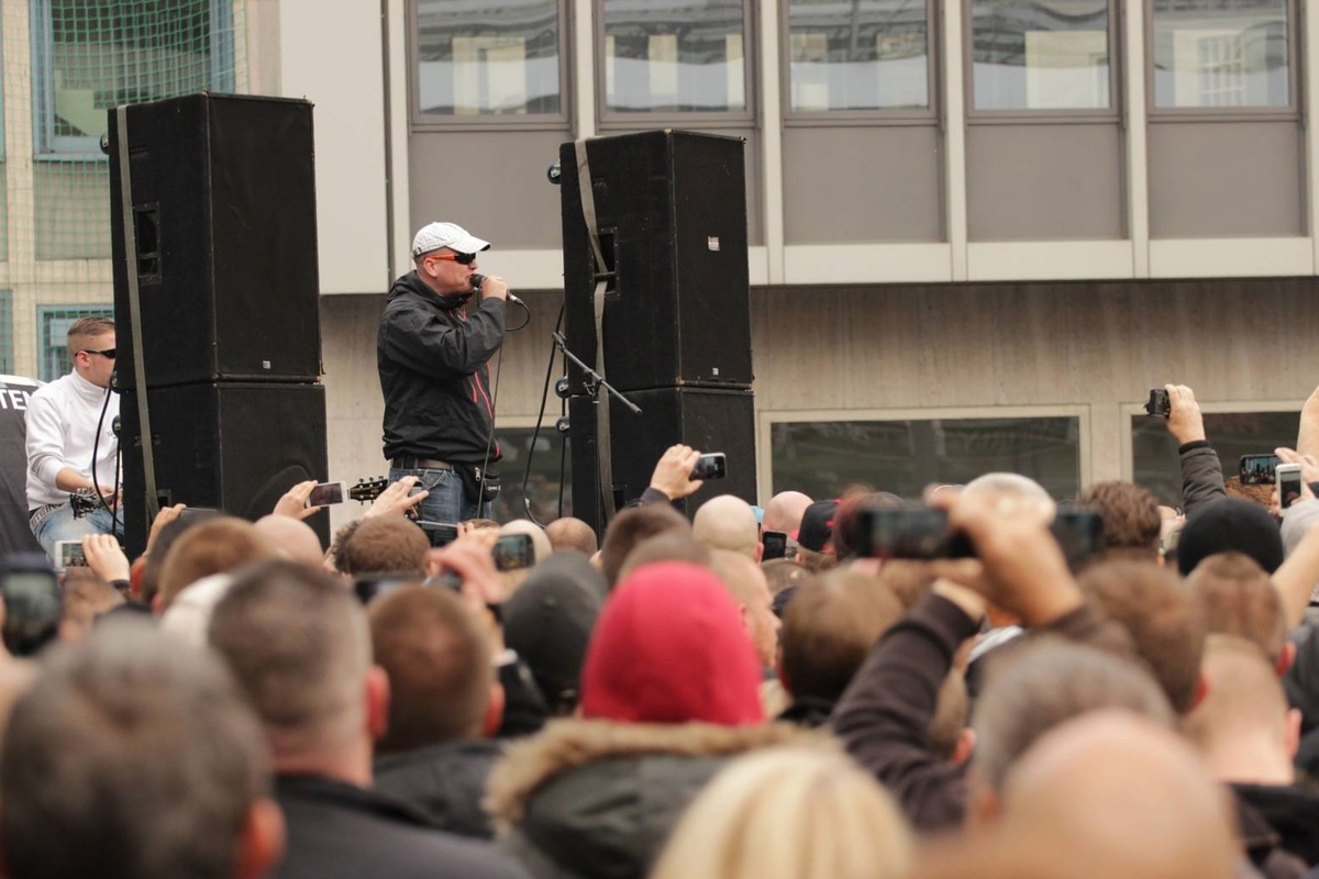 Auf der Bühne spielt die Rechtsrockband „Kategorie C“, auf dem Platz johlen 3.000 Glatzen. Viele bekannte Neonazis stehen in der Menge und brüllen im Takt : „Wir wollen keine Salafisten-Schweine“ und „Hier marschiert der Nationale Widerstand“.
