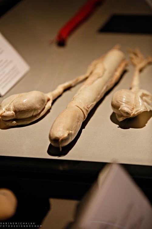 Was man der Ausstellung allerdings auch anmerkt, und was den wissenschaftlichen Charakter ein wenig schmälert ist die ästhertisierte Darstellung der Tiere. Viele Exponate haben zum Beispiel noch Fellbüschel an Händen und Pfoten, oder werden in ungewöhnlichen Haltungen präsentiert. Am seltsamsten mutet die Darstellung eines Yaks an, dessen Leibeswand flügelartig geöffnet und mit Fell versehen wurde, und dem die Kopfmuskulatur abgenommen, und über dem Rücken hergerichtet wurde. Es entsteht der Eindruck eines zweiköpfigen Flugrindes.
