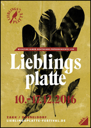 MIT LIEBLINGSPLATTE GEHT EIN NEUES MUSIKFESTIVAL AN DEN START, WIE ES BISHER NICHT EXISTIERTE. SIEBEN HANDVERLESENE DEUTSCHE BANDS UND SOLO-ACTS FÜHREN EIN HERVORRAGENDES ALBUM AUS IHREN GESAMTWERK LIVE AUF. DIE PERFORMANCES SIND EXKLUSIV, DIE BANDS PROBEN IHR ALBUM FÜR LIEBLINGSPLATTE EIN UND BRINGEN ES DANN IN DER WOCHE VOM 10. BIS 17.DEZEMBER IM DÜSSELDORFER ZAKK AUF DIE BÜHNE.