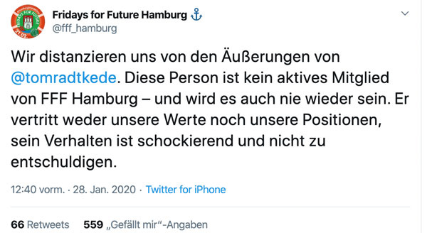 Fridays for Future hat sich sofort von Radtke distanziert.
