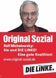 Foto: Wahlplakat des ehemaligen Grünen, Ralf Michalowsky, der für die Linken in den Landtag NRW einziehen will.