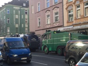 9.38 Uhr: Gerüchte und Twitterrauschen, mehr ist noch nicht zu vermelden. Immer wieder wird getwittert und kolportiert, wo die Polizei gerade Bereiche absperrt oder massiert auftritt. Und alle versuchen daraus zu interpretieren, wo der heute Nazi Spuk stattfinden soll. Aktuell gut im Rennen ist das Kreuzviertel, wo Hamburger Gitter aufgestellt und Wasserwerfer bereitgestellt worden sind. Auch vom Gelände rund um die Westfalenhalle wird ähnliches berichtet.