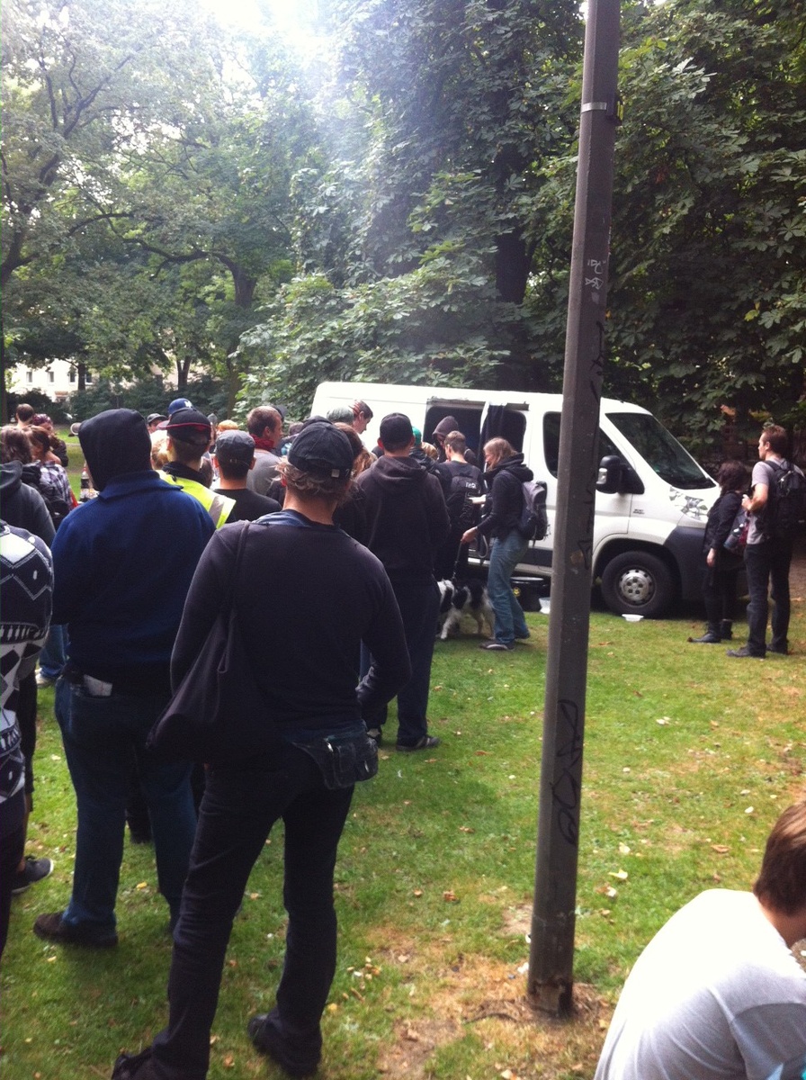 15.18 Uhr: Auch die Polizei gibt erste Statements über das Demonstrationsgeschehen ab. „Alles Friedlich“, so der grundsätzliche Tenor, lediglich den Machern des Antifa Camps wurde vorgehalten, sie hätten sich unkooperativ verhalten. Was darunter genau zu verstehen ist, ist noch nicht ganz klar.