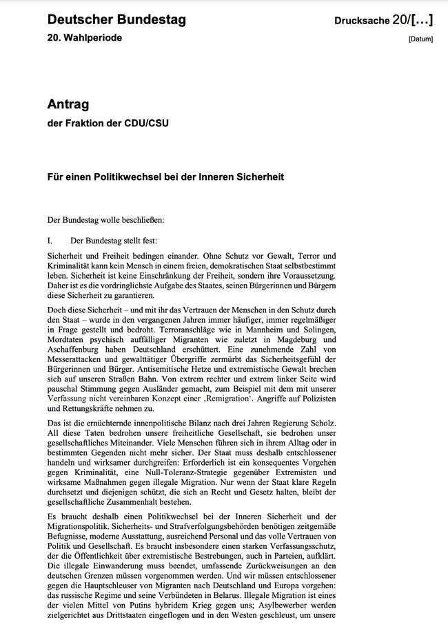 Kommt der Antrag im Bundestag tatsächlich noch vor der Wahl zur Abstimmung, ist es wahrscheinlich, dass nur die Unionsfraktion und die FDP ihm zustimmen. AfD und BSW könnten ihn dann gemeinsam, wenn auch aus unterschiedlichen Gründen, gemeinsam mit SPD und Grünen ablehnen. Am Ende stünden CDU und CSU als die Parteien da, die zwar eine Wende in der Migrationspolitik wollen, aber den Rechtsradikalen nicht die Hand reichen.