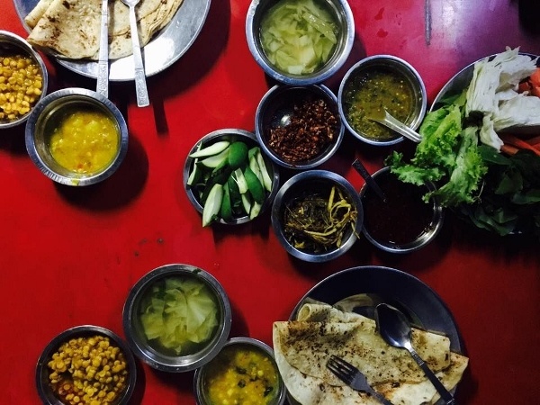 Dichtgedrängt auf Plastikstühlen sitzen wir früh am Morgen in einem der unzähligen offenen Straßenrestaurants und probieren die Suppe. Um uns herum sitzen ganze Schulklassen, Trishaw-Fahrer, Büroangestellte und Markfrauen zusammen, tauschen sich aus und schlürfen genüsslich ihre heiße Suppe. Weiter geht’s über den größten Markt der Stadt und durch einige Restaurants. Wir probieren Früchte, Gebäck, lernen lokale Obst- und Gemüsesorten kennen. Probieren einen schrecklich süßen Tee, der im Wesentlichen aus Kondensmilch und Zucker besteht und als Köstlichkeit zum Essen und Gebäck gilt. Als krönender Abschluss kosten wir Lahpet thoke. Die Hauptzutat sind Teeblätter, die eingelegt und als eine Art Salat serviert werden. Tomatenscheiben und knusprige, zwei Mal frittierte Bohnen, Erbsen oder Erdnüsse werden zu den fermentierten Teeblättern gegeben. Ein großzügiger Schuss Erdnussöl mit dem Geschmack gerösteten Knoblauchs oder Chilli wird darüber gegossen und schließlich wird alles mit weißen Sesamsamen bestreut.