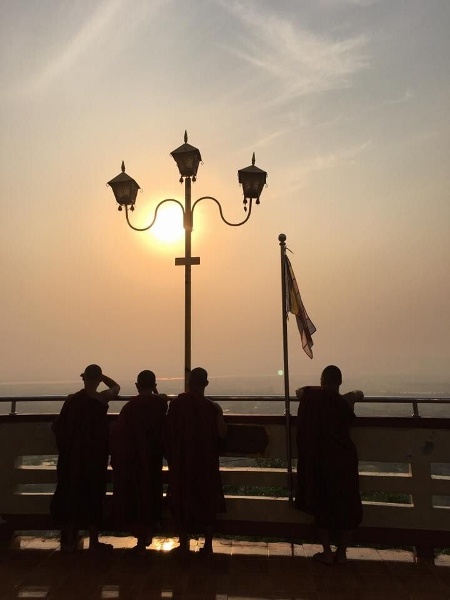 Voll gefuttert geht es weiter mit einem Motorradtaxi durch die Stadt. Wir schauen uns den Herstellungsprozess von Blattgold an, besuchen die Kuthodaw-Pagode, Pagode der Königlichen Verdienste. In ihren 729 weißen Stupas wurde das Leben und die Lehren Buddhas auf Marmortafeln niedergeschrieben stehen. Die Pagode gilt aufgrund ihrer umfangreichen Darstellung als „Das größte Buch der Welt“. Unser Weg führt uns weiter zur zweit wichtigsten Pagode des Landes, der Mahamuni Pagode. Die darin aufgestellte Buddhastatue soll eins von nur fünf zu Lebzeiten Buddhas erstellten Bildnissen sein. Täglich bekleben dutzende gläubige Männer die Statue mit Blattgold. Frauen ist es leider nicht gestattet, sie werden auf einen Gebetsbereich vor der Statue verwiesen. Die Sightseeing-Tour endet mit einem Besuch des 240 Meter hohen Gipfel des Mandalay Hills. Entlang der überdachten Treppe mit 1.700 Stufen befinden sich Pagoden und Buddhastatuen sowie zahlreiche Souvenir- und Handwerksgeschäfte. Der Aufstieg wird bei guten Wetter mit schönen Ausblick über die Stadt und das Umland belohnt.