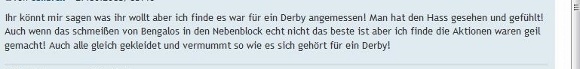 Diese Kommentare sind von der Plattform „ultras.ws“. Diese wird von allen Ultras Gruppen absolut nicht für vollg genommen und boykottiert. Das nächste mal vielleicht ein wenig besser recherchieren.