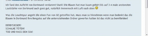 Dessen pädagogischer Leiter Rolf-Arnd Marewski wurde vor einiger Zeit (deswegen auch kein Beitrags-Link mehr) vom WDR in einem längeren Beitrag zum Thema Nazis/Faschos im Westfalenstadion interviewt und hatte als wirklich erstaunliche Antwort zu bieten, dass man ja heute kaum noch Glatzen und Springerstiefel im Stadion sehen würde, das Nazi-Problem somit deutlich zu hoch aufgehängt wird… während gleichzeitig dieser „SS-Siggi“ munter im NWDO und bei der „Rechten“ die große Fresse markiert und die „Desperados“ fröhlich ihre braunen Freunde und Transparente auf den Tribünen präsentieren.